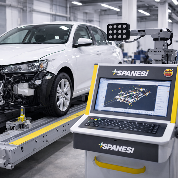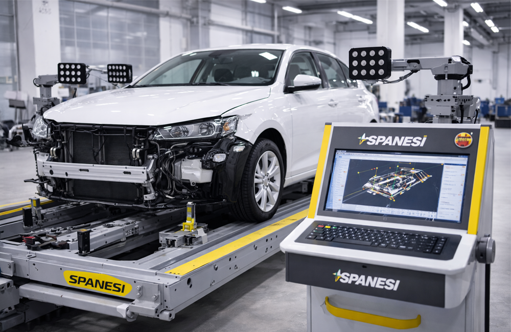 Dabei wird die Fahrzeugstruktur mit Messtechnik millimetergenau geprüft, um Verzüge oder strukturelle Abweichungen nach einem Unfall nachzuweisen.